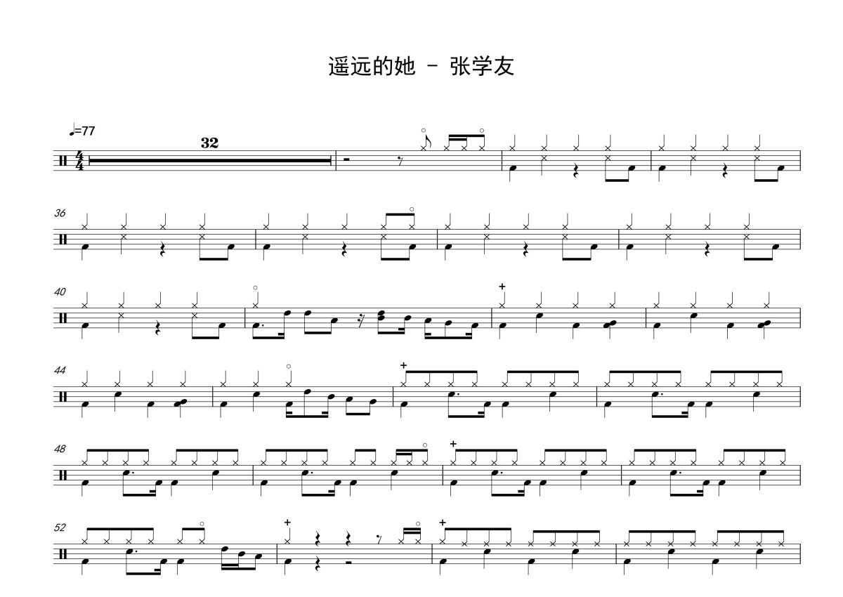 张学友《遥远的她》鼓谱 - 架子鼓谱