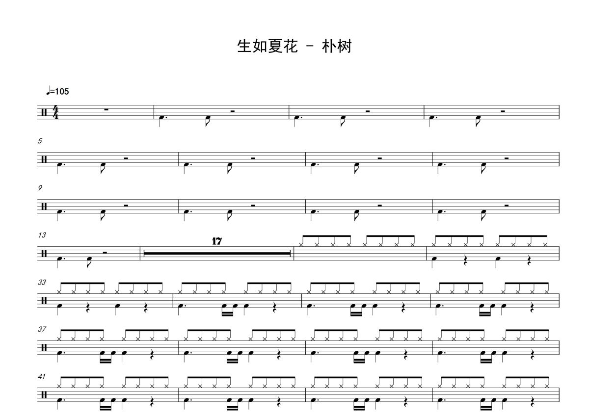 朴树《生如夏花》鼓谱 - 架子鼓谱