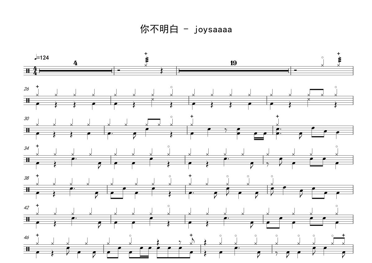 joysaaaa《你不明白》鼓谱 - 架子鼓谱
