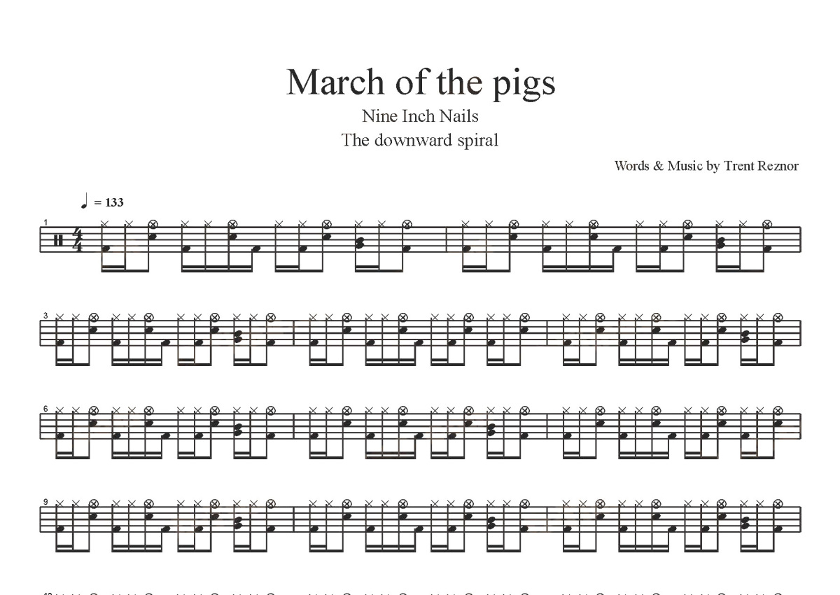 Nine Inch Nails《March of the pigs》鼓谱 - 架子鼓谱