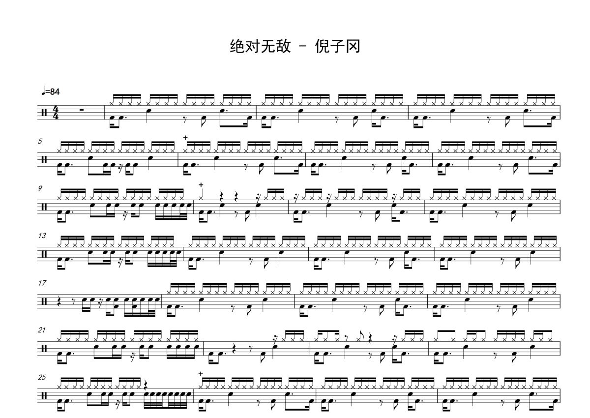 倪子冈《绝对无敌》鼓谱 - 架子鼓谱