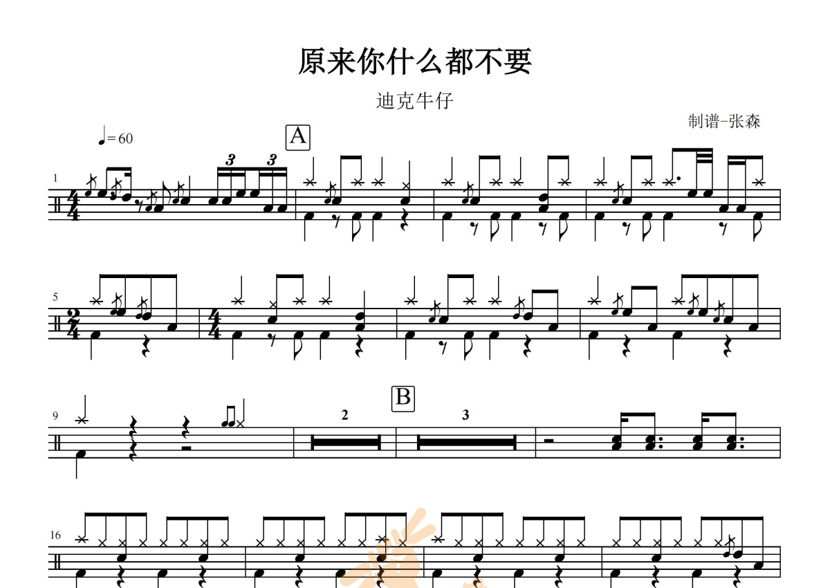 迪克牛仔《原来你什么都不要》鼓谱 - 架子鼓谱