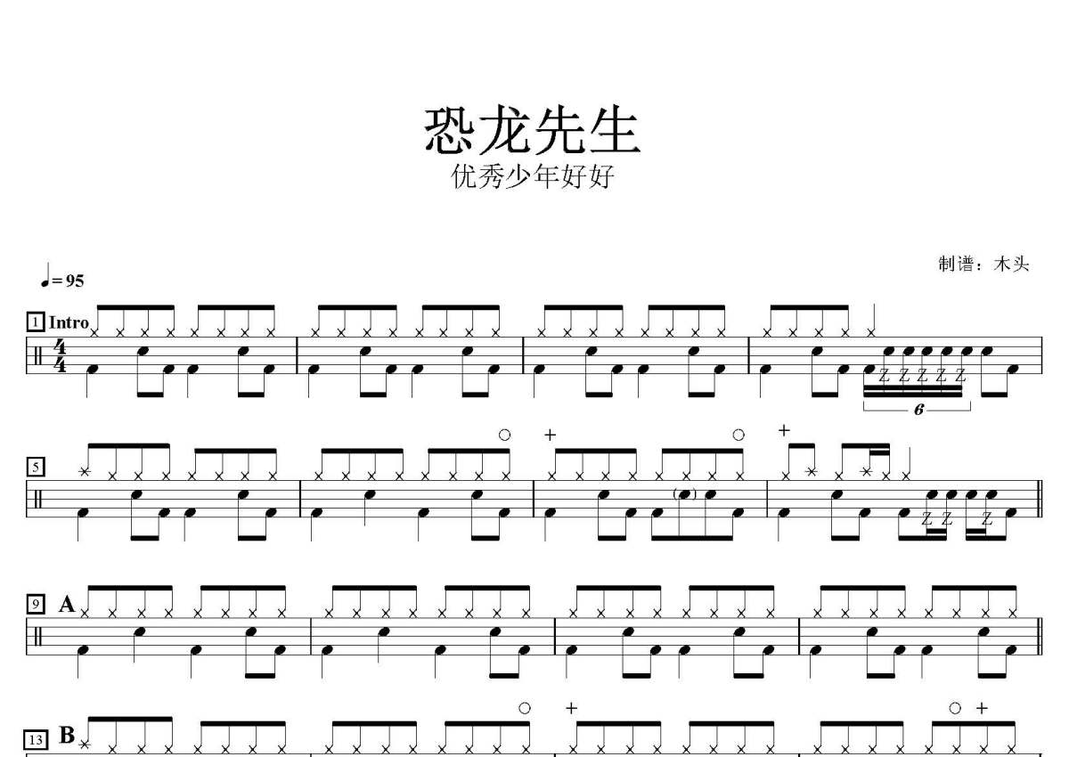 优秀少年好好《恐龙先生》鼓谱 - 架子鼓谱