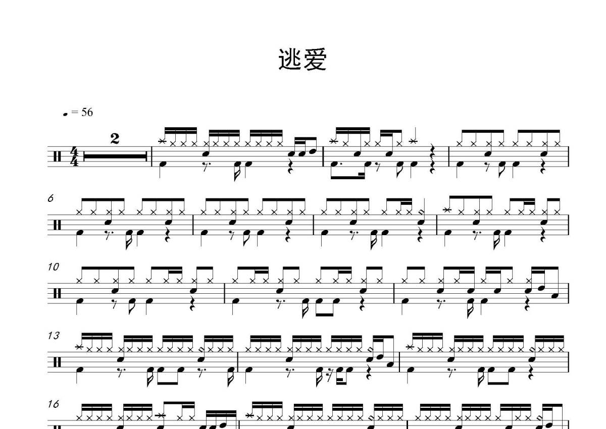 《逃爱》鼓谱 - 架子鼓谱