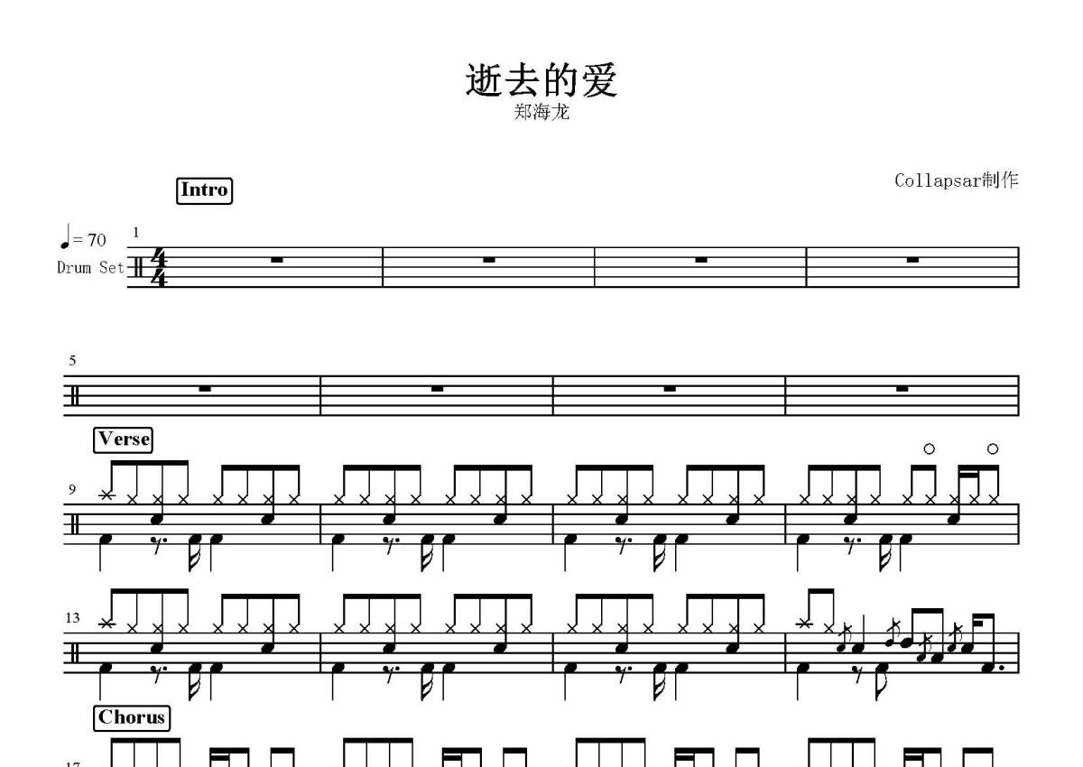 郑海龙《逝去的爱》鼓谱 - 架子鼓谱