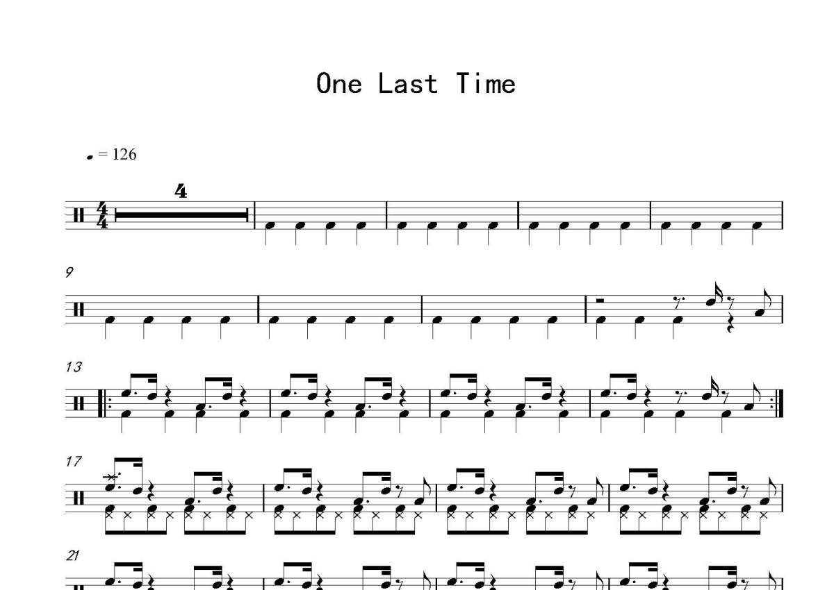 《One Last Time》是Kelly Mack演唱的一首歌曲,这份鼓谱共有三张高清图谱,图谱由 @打鼓谱 编配上传,图谱使用五线谱编配,使用这份One Last Time架子鼓谱,你将能够轻松地敲打出这首Kelly Mack的One Last Time,快来尝试吧。《One Last Time》是一首英文歌曲,美国女歌手Kelly Mack演唱,收录于 Kelly Mack于2008年发行的处女专辑《Take Me With You》。加拿大歌手Elise Estrada也演唱过同名歌曲。