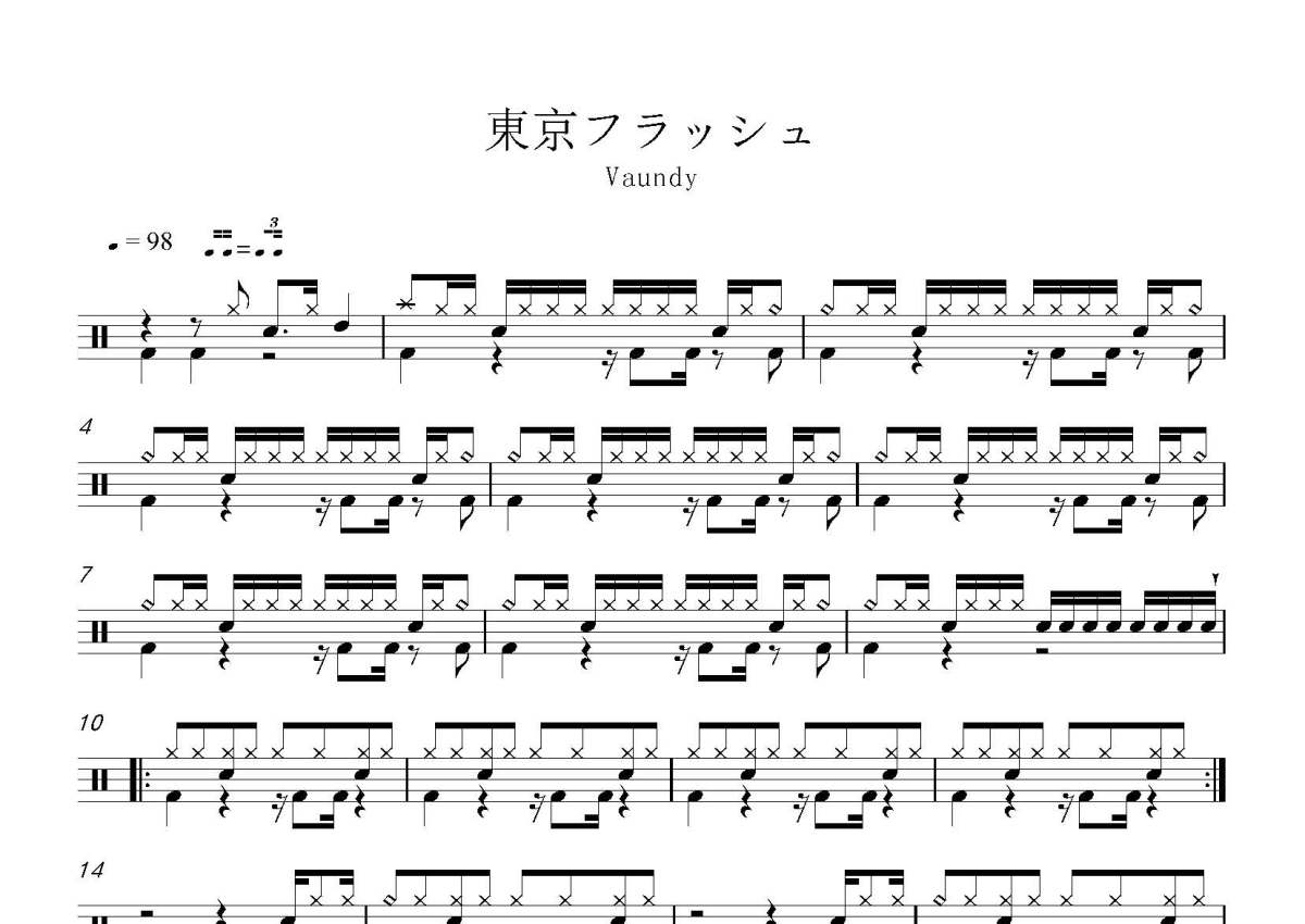 vaundy《東京フラッシュ》鼓谱 - 架子鼓谱