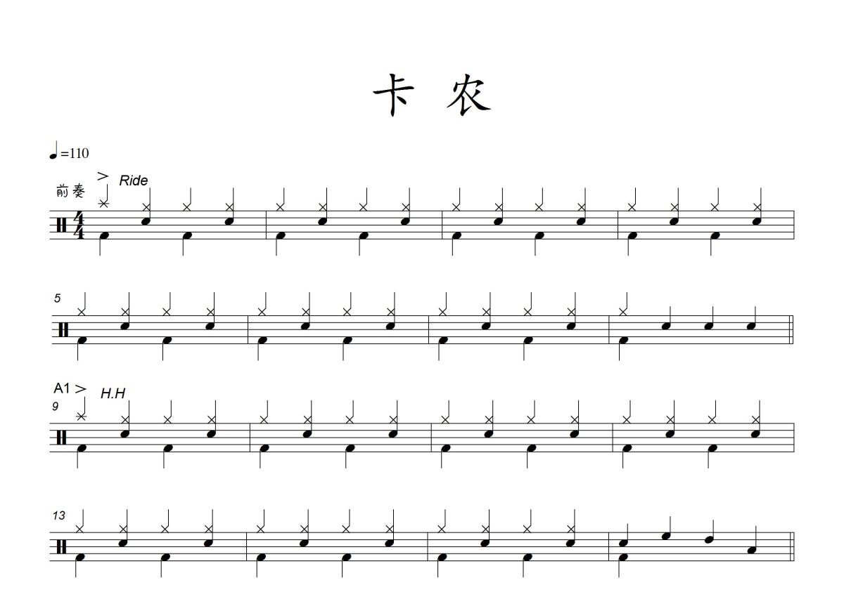 佚名《卡农》鼓谱 - 架子鼓谱 - 简单版