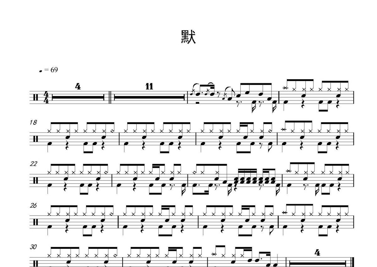 《默》鼓谱 - 架子鼓谱