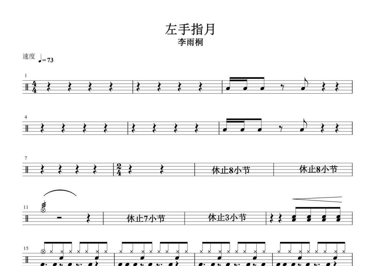李雨桐《左手指月》鼓谱 - 架子鼓谱