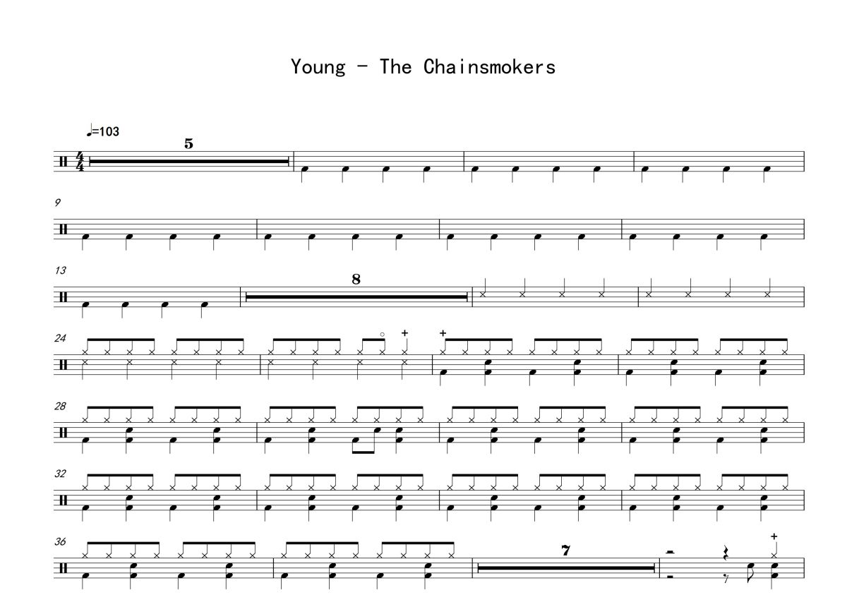 The Chainsmokers《Young》鼓谱 - 架子鼓谱