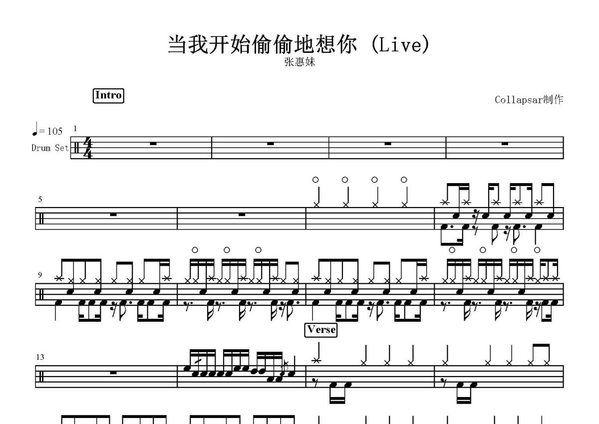 张惠妹《当我开始偷偷地想你》鼓谱 - 架子鼓谱 - Live