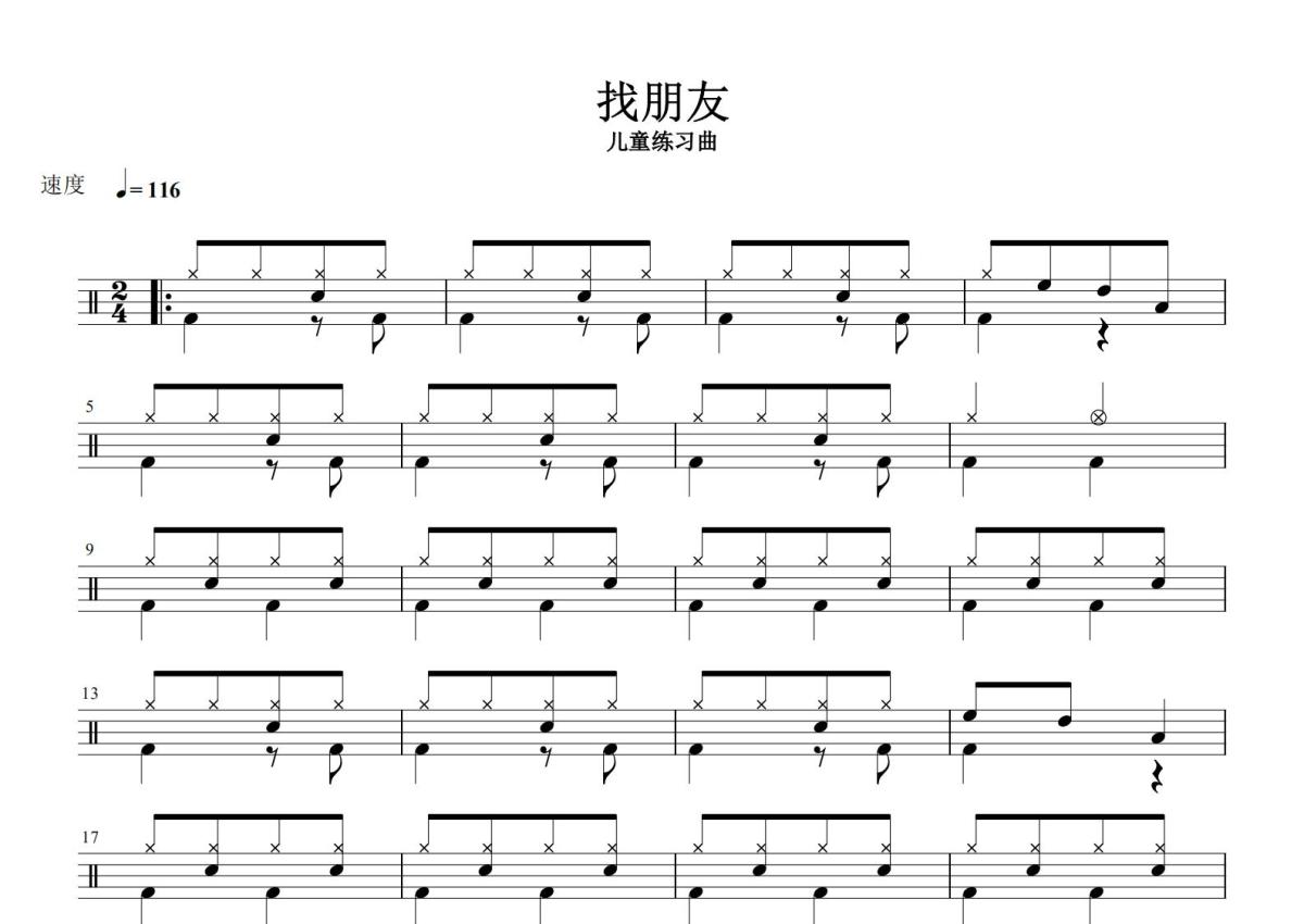 儿童练习曲《找朋友》鼓谱 - 架子鼓谱