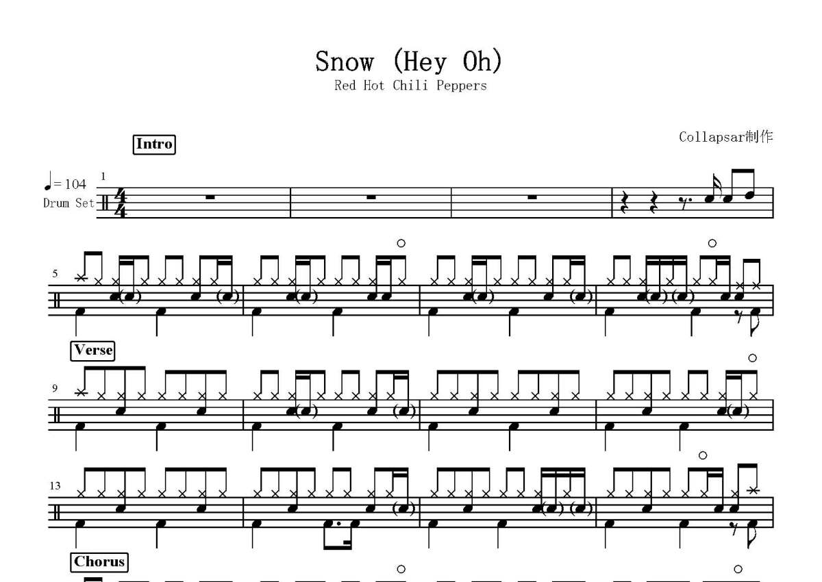 Red Hot Chili Peppers《Snow》鼓谱 - 架子鼓谱