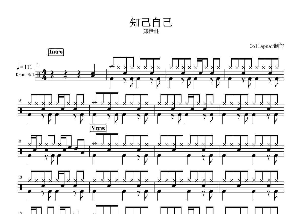 郑伊健《知己,自己》鼓谱 - 架子鼓谱