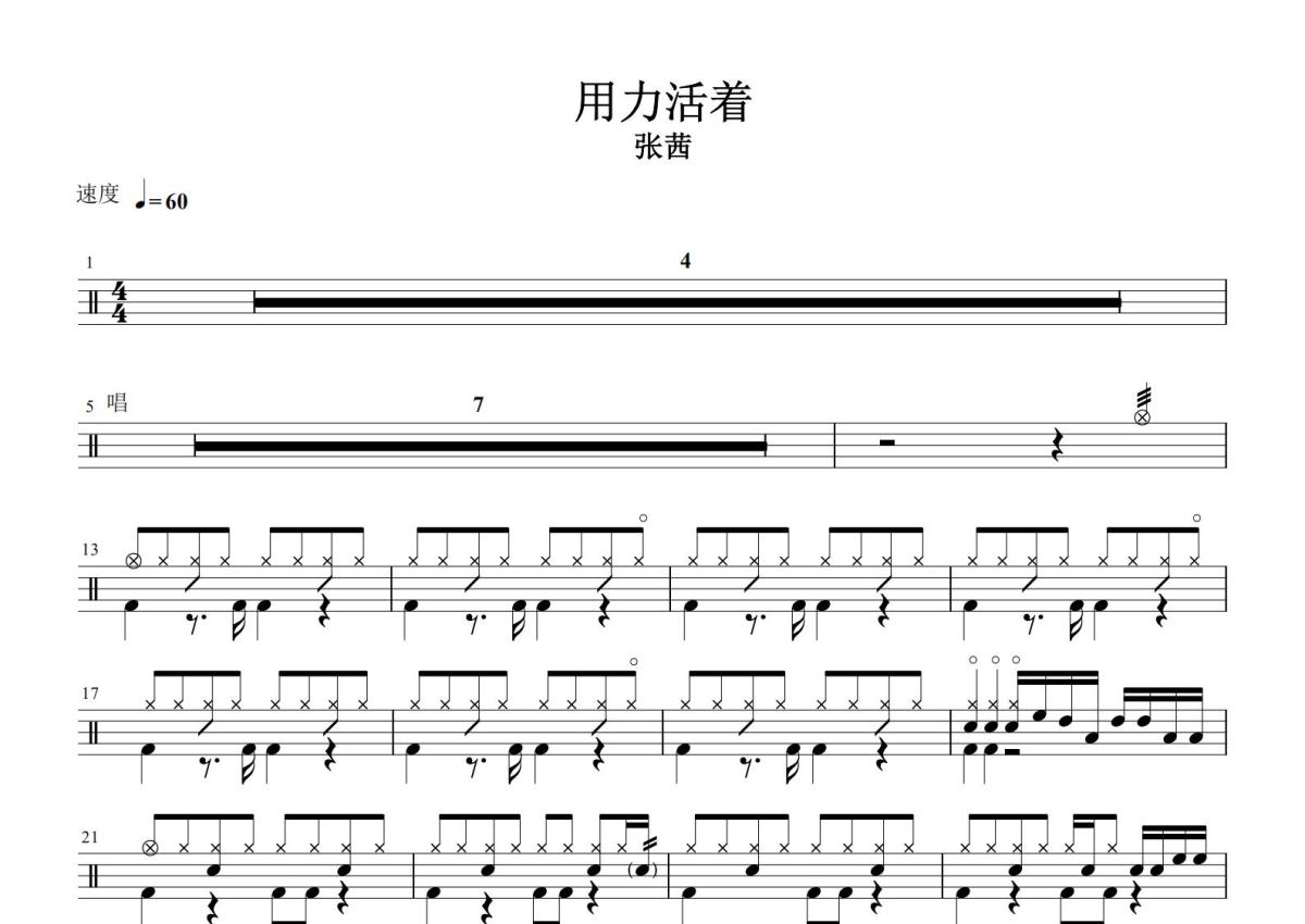 张茜《用力活着》鼓谱 - 架子鼓谱