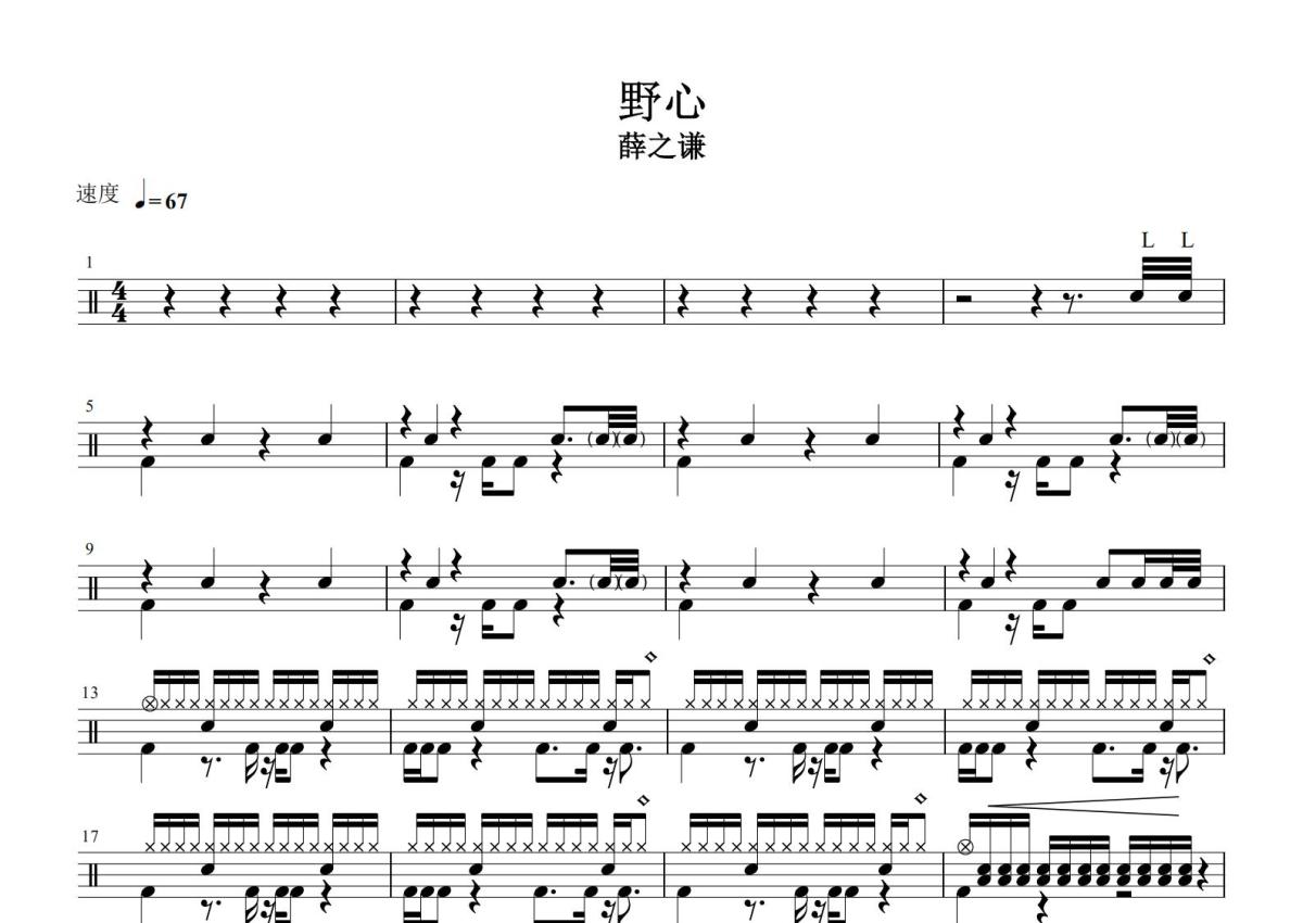 薛之谦《野心》鼓谱 - 架子鼓谱