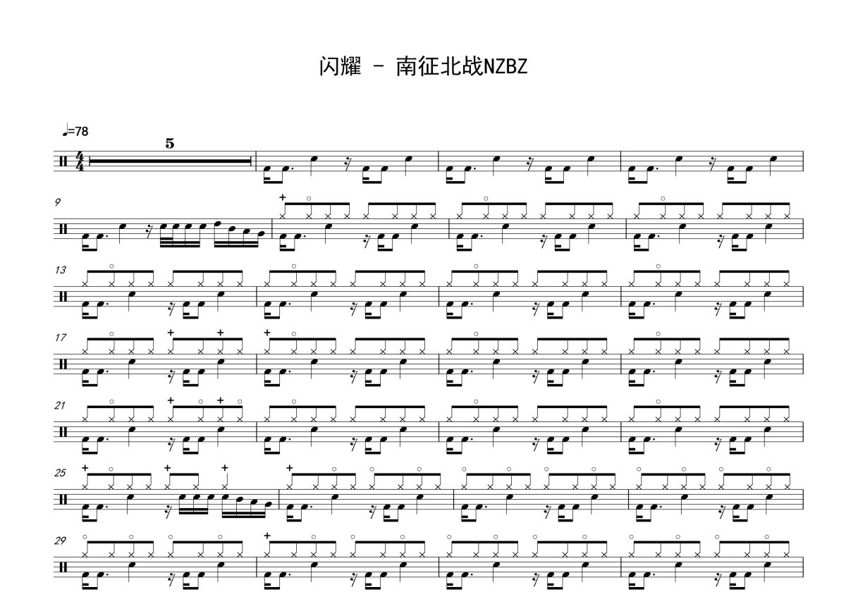 南征北战NZBZ《闪耀》鼓谱 - 架子鼓谱