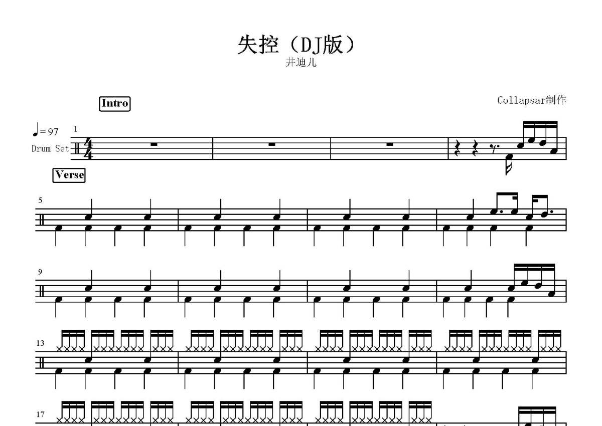 井迪儿《失控》鼓谱 - 架子鼓谱