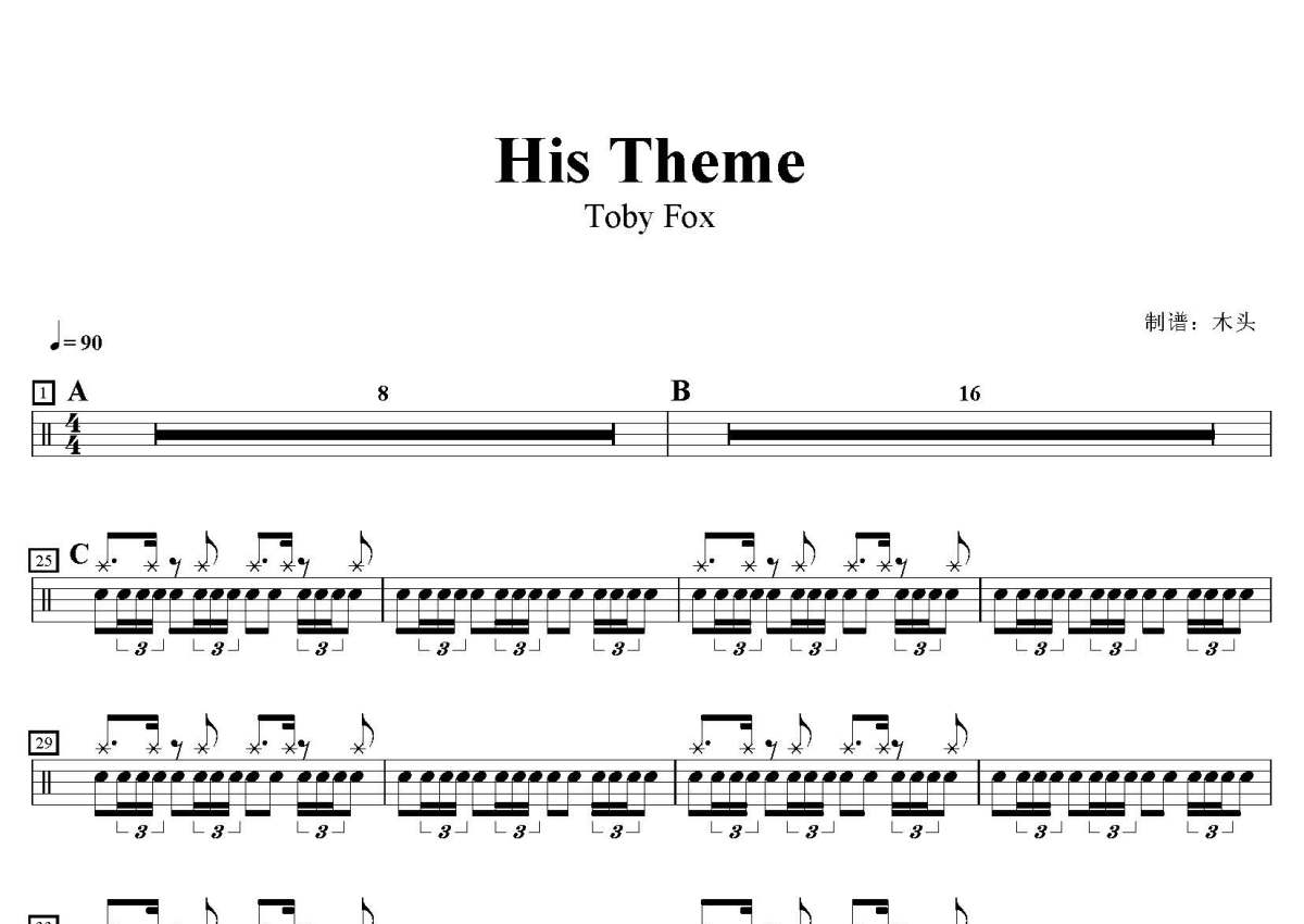 Toby Fox《His Theme》鼓谱 - 架子鼓谱