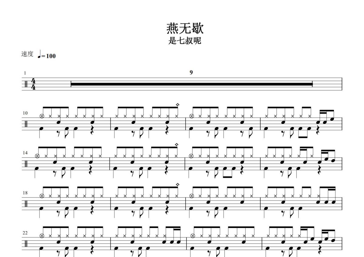 是七叔呢《燕无歇》鼓谱 - 架子鼓谱