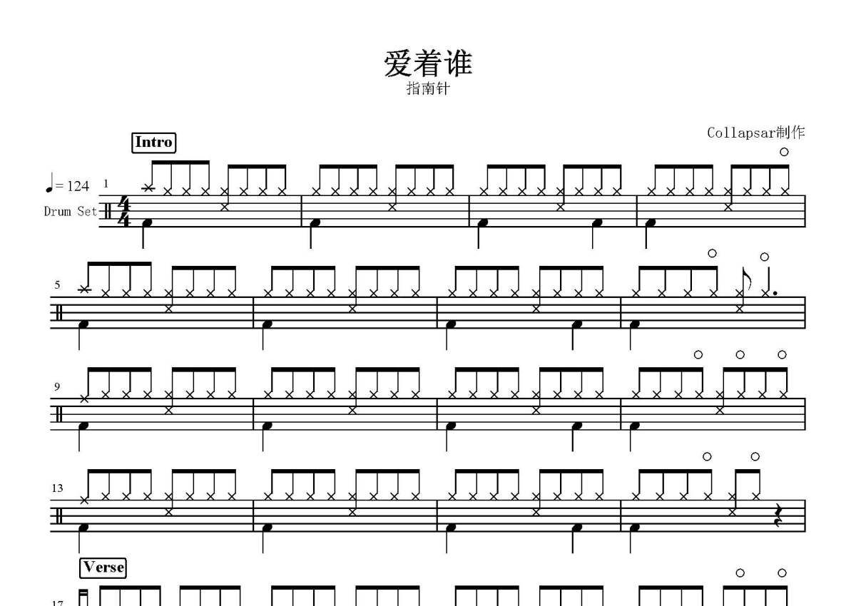 指南针《爱着谁》鼓谱 - 架子鼓谱