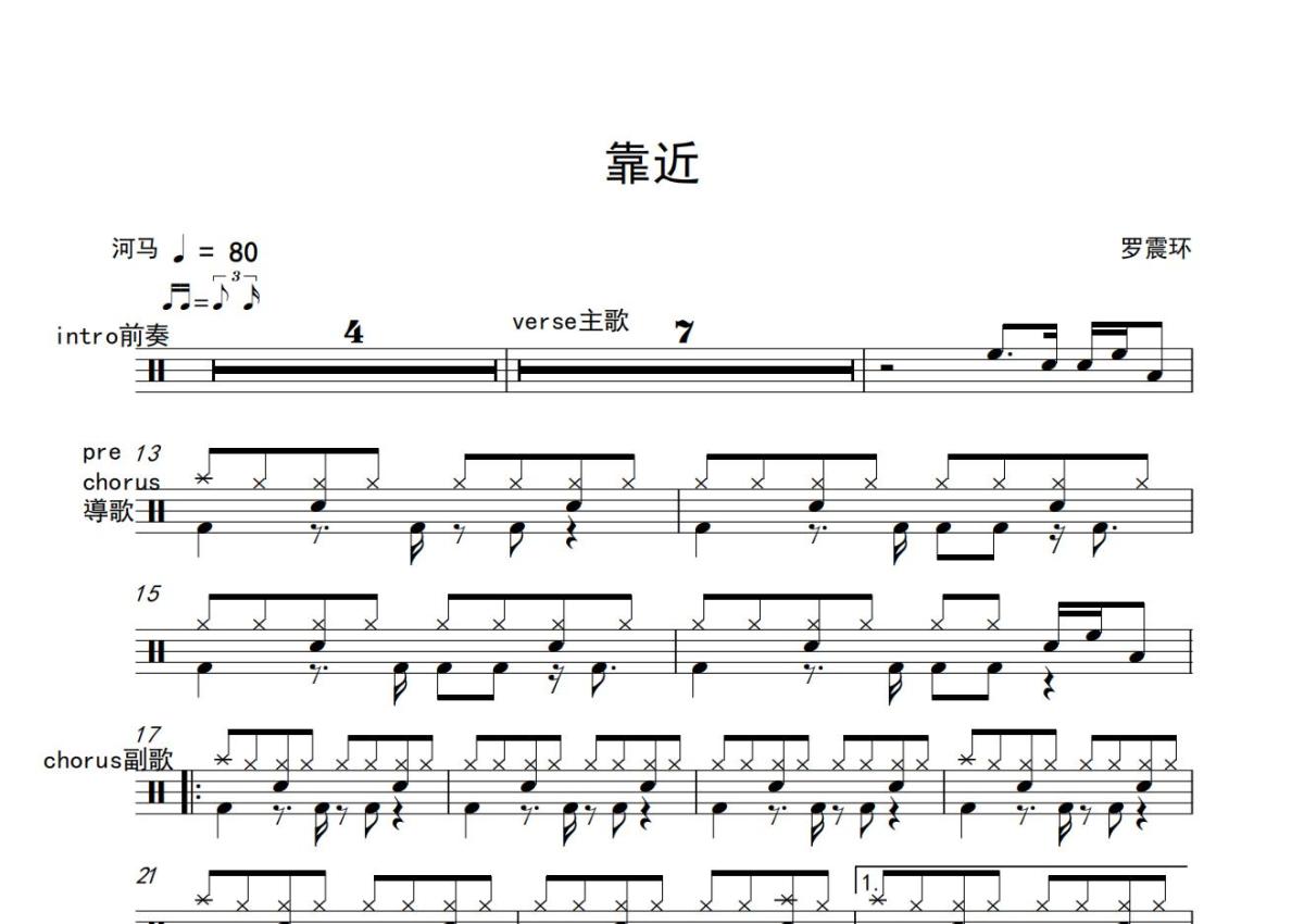 罗震环《靠近》鼓谱 - 架子鼓谱