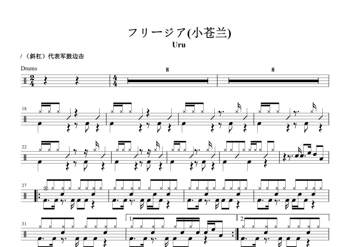 Uru《小苍兰》鼓谱 - 架子鼓谱