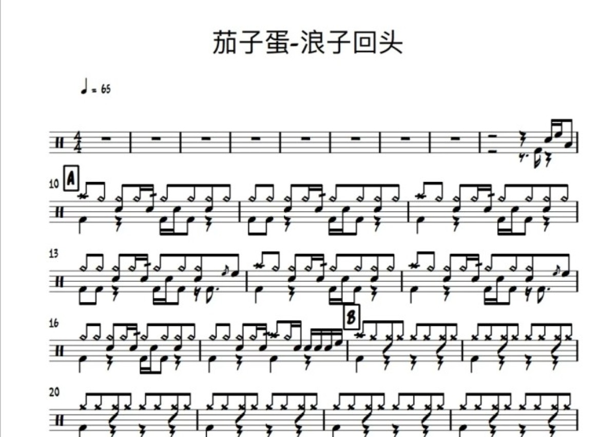 茄子蛋《浪子回头》鼓谱 - 架子鼓谱