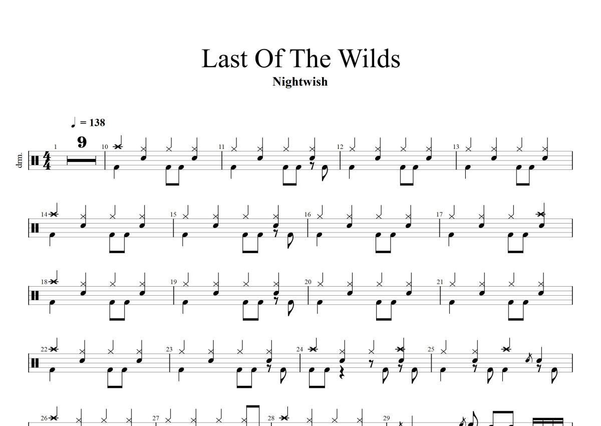 Nightwish《Last of the Wilds》鼓谱 - 架子鼓谱
