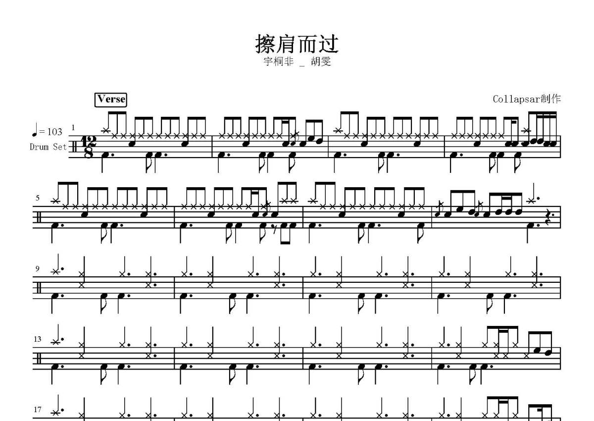 宇桐非/胡雯《擦肩而过》鼓谱 - 架子鼓谱