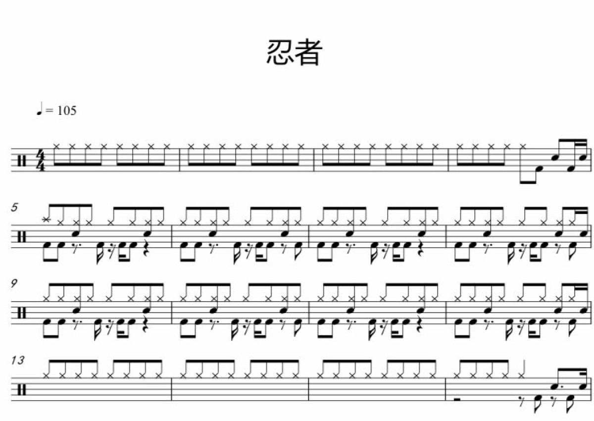 《忍者》是周杰伦演唱的一首歌曲,这份鼓谱共有两张高清图谱,图谱由 @打鼓谱 编配上传,图谱使用五线谱编配,使用这份忍者架子鼓谱,你将能够轻松地敲打出这首周杰伦的忍者,快来尝试吧。《忍者》是周杰伦演唱的一首歌曲,由方文山作词,周杰伦作曲,林迈可编曲,收录于周杰伦2001年9月20日发行的专辑《范特西》中。周杰伦(Jay Chou),1979年1月18日出生于台湾省新北市,祖籍福建省泉州市永春县,中国台湾流行乐男歌手、原创音乐人、演员、导演、编剧,毕业于淡江中学。 。