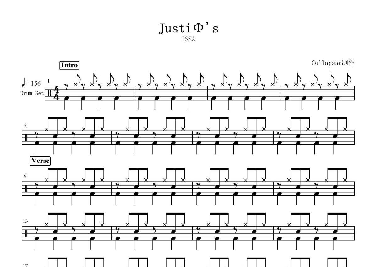 ISSA《JustiΦ'S》鼓谱 - 架子鼓谱