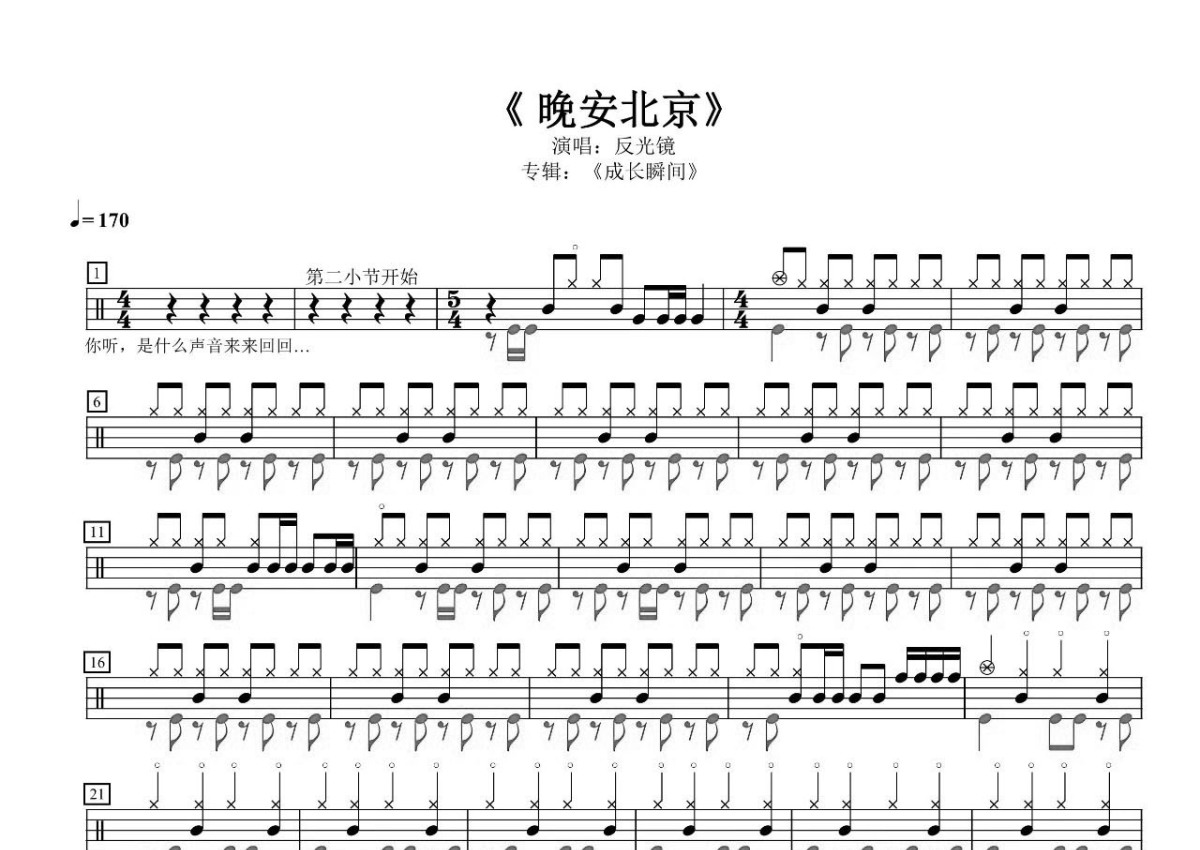 反光镜乐队/Reflector《晚安北京》鼓谱 - 架子鼓谱