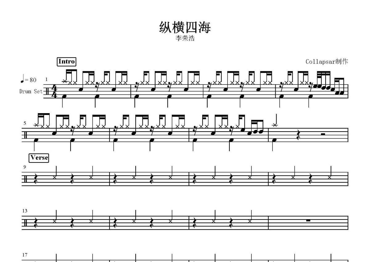 李荣浩《纵横四海》鼓谱 - 架子鼓谱