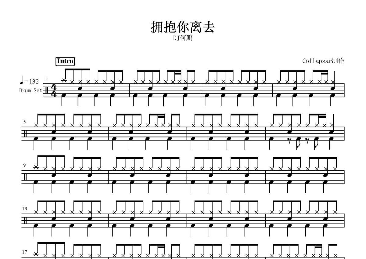 DJ何鹏《拥抱你离去》鼓谱 - 架子鼓谱