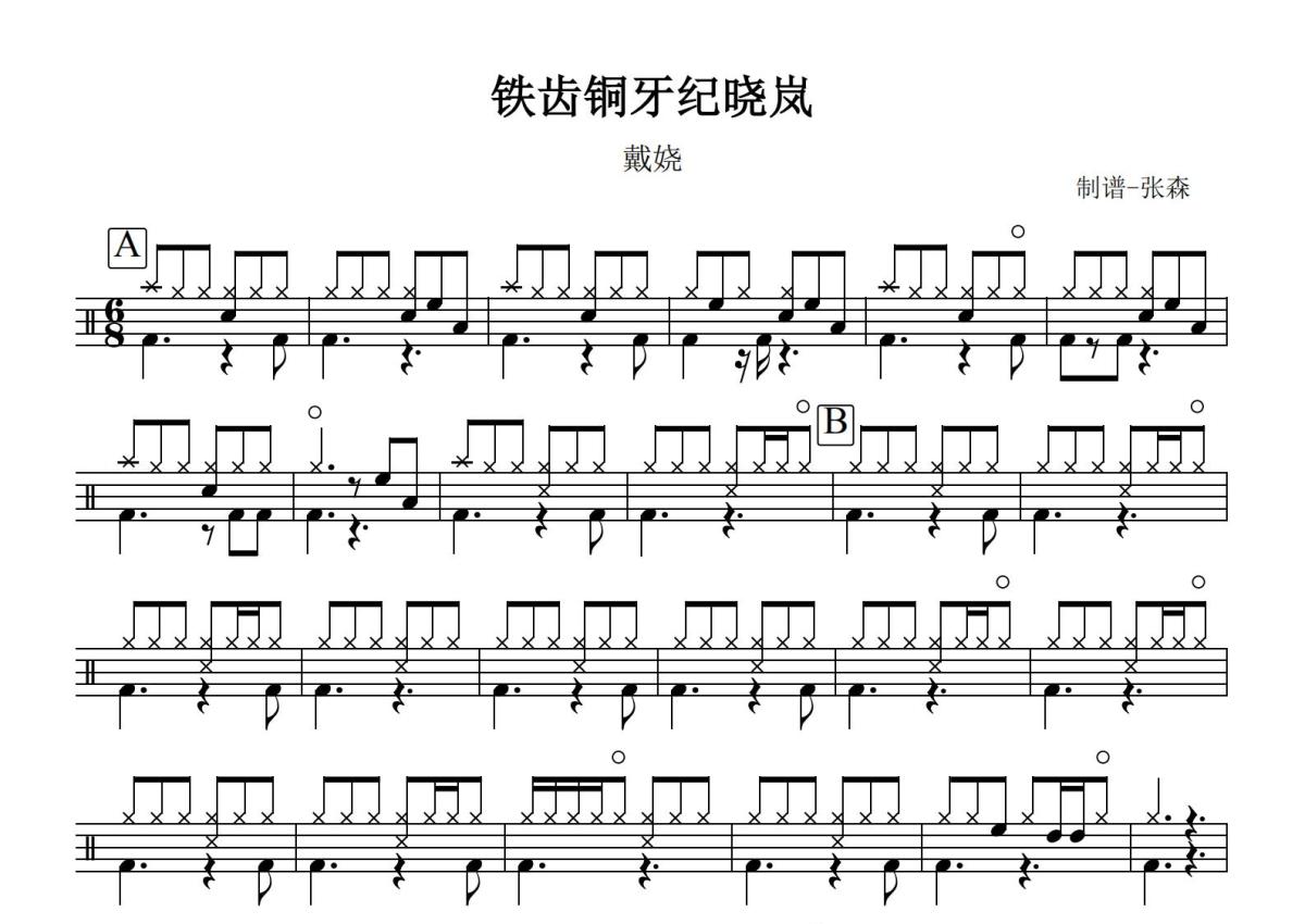 《铁齿铜牙纪晓岚》是戴娆演唱的一首歌曲,这份鼓谱共有两张高清图谱,图谱由 @打鼓谱 编配上传,图谱使用五线谱编配,使用这份铁齿铜牙纪晓岚架子鼓谱,你将能够轻松地敲打出这首戴娆的铁齿铜牙纪晓岚,快来尝试吧。《铁齿铜牙纪晓岚》是同名电视剧《铁齿铜牙纪晓岚》的片尾曲,由戴娆演唱,收录于2004年音乐专辑《锦上添花》。