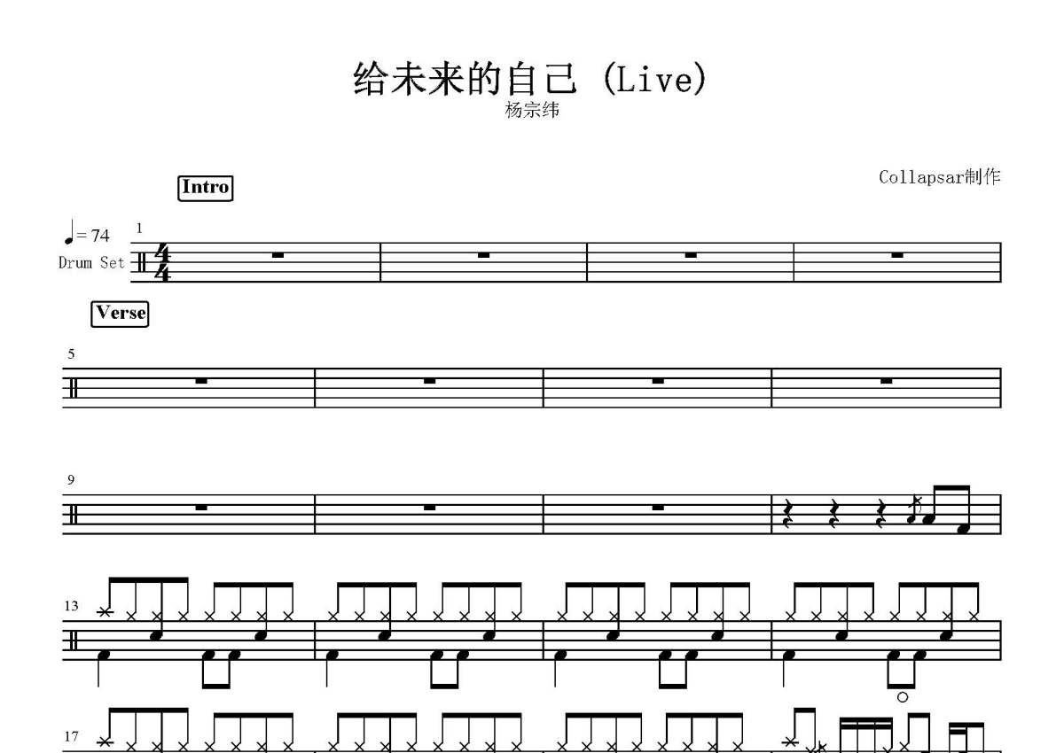 杨宗纬《给未来的自己》鼓谱 - 架子鼓谱