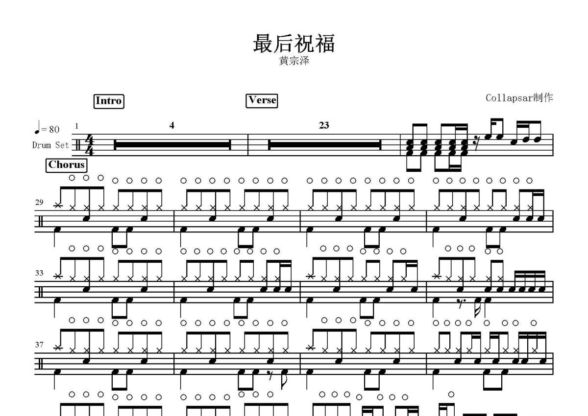 黄宗泽《最后祝福》鼓谱 - 架子鼓谱