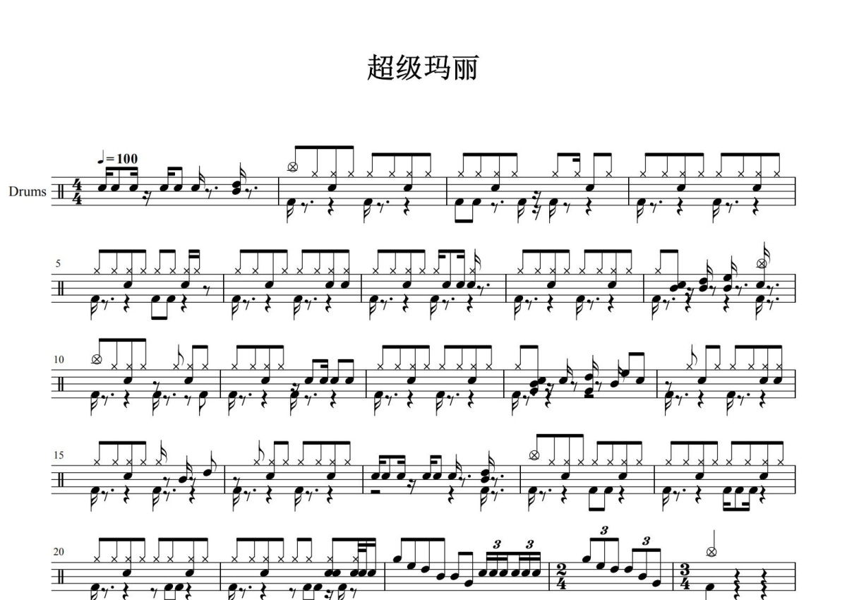 《超级玛丽》是超级玛丽演唱的一首歌曲,这份鼓谱共有两张高清图谱,图谱由 @打鼓谱 编配上传,图谱使用五线谱编配,使用这份超级玛丽架子鼓谱,你将能够轻松地敲打出这首超级玛丽的超级玛丽,快来尝试吧。《超级玛丽》游戏曲。