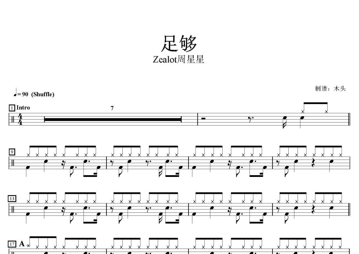 Zealot周星星《足够》鼓谱 - 架子鼓谱