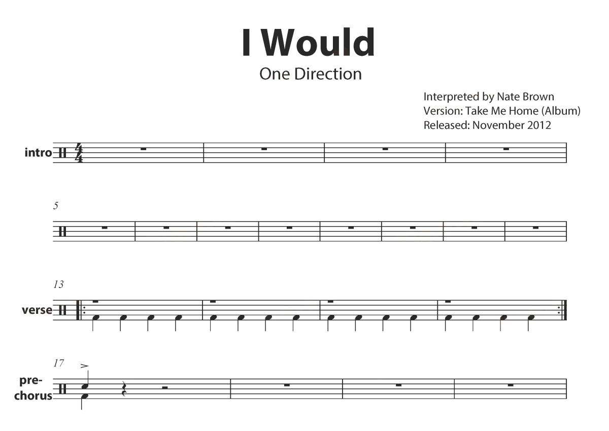 One Direction《I Would》鼓谱 - 架子鼓谱