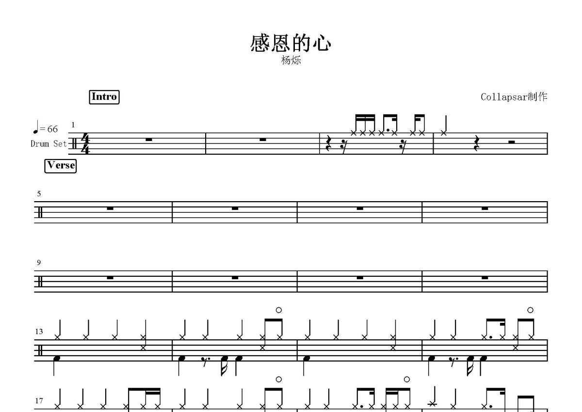 杨烁《感恩的心》鼓谱 - 架子鼓谱