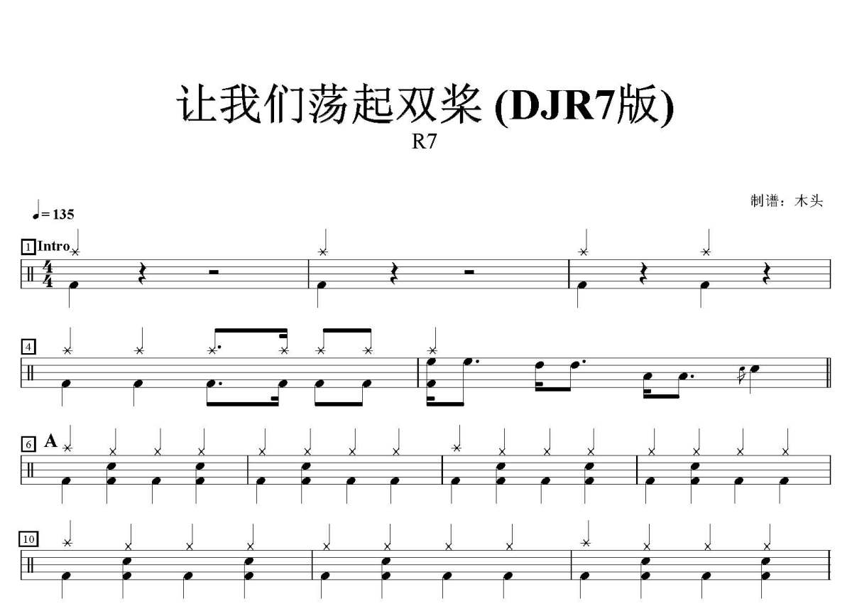 R7《让我们荡起双桨》鼓谱 - 架子鼓谱 - DJR7版