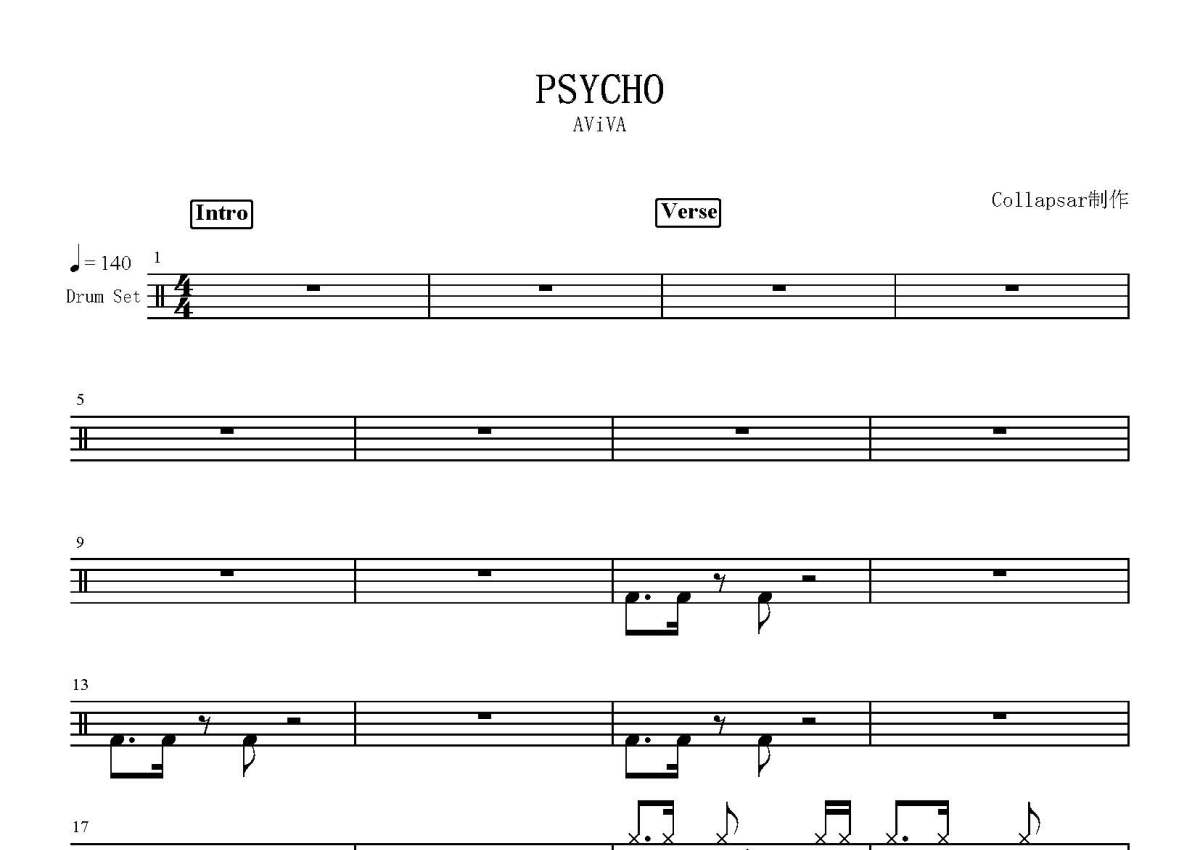 AViVA《PSYCHO》鼓谱 - 架子鼓谱