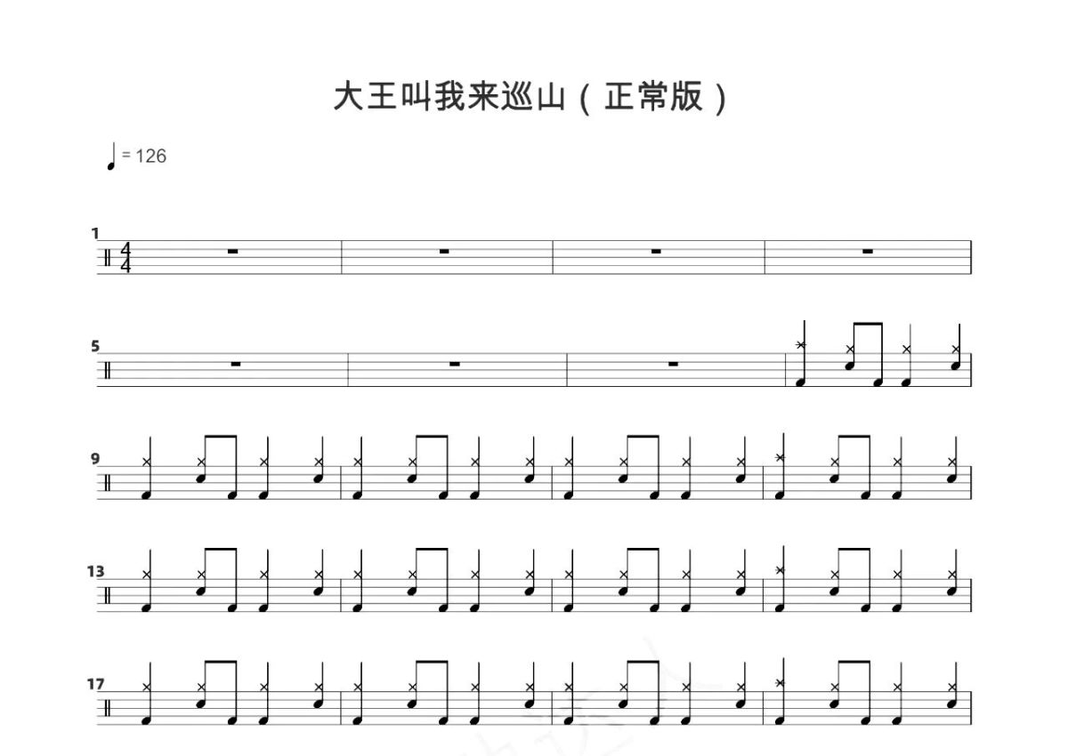 《大王叫我来巡山》是赵英俊演唱的一首歌曲,这份鼓谱共有三张高清图谱,图谱由 @打鼓谱 编配上传,图谱使用五线谱编配,使用这份大王叫我来巡山架子鼓谱,你将能够轻松地敲打出这首赵英俊的大王叫我来巡山,快来尝试吧。