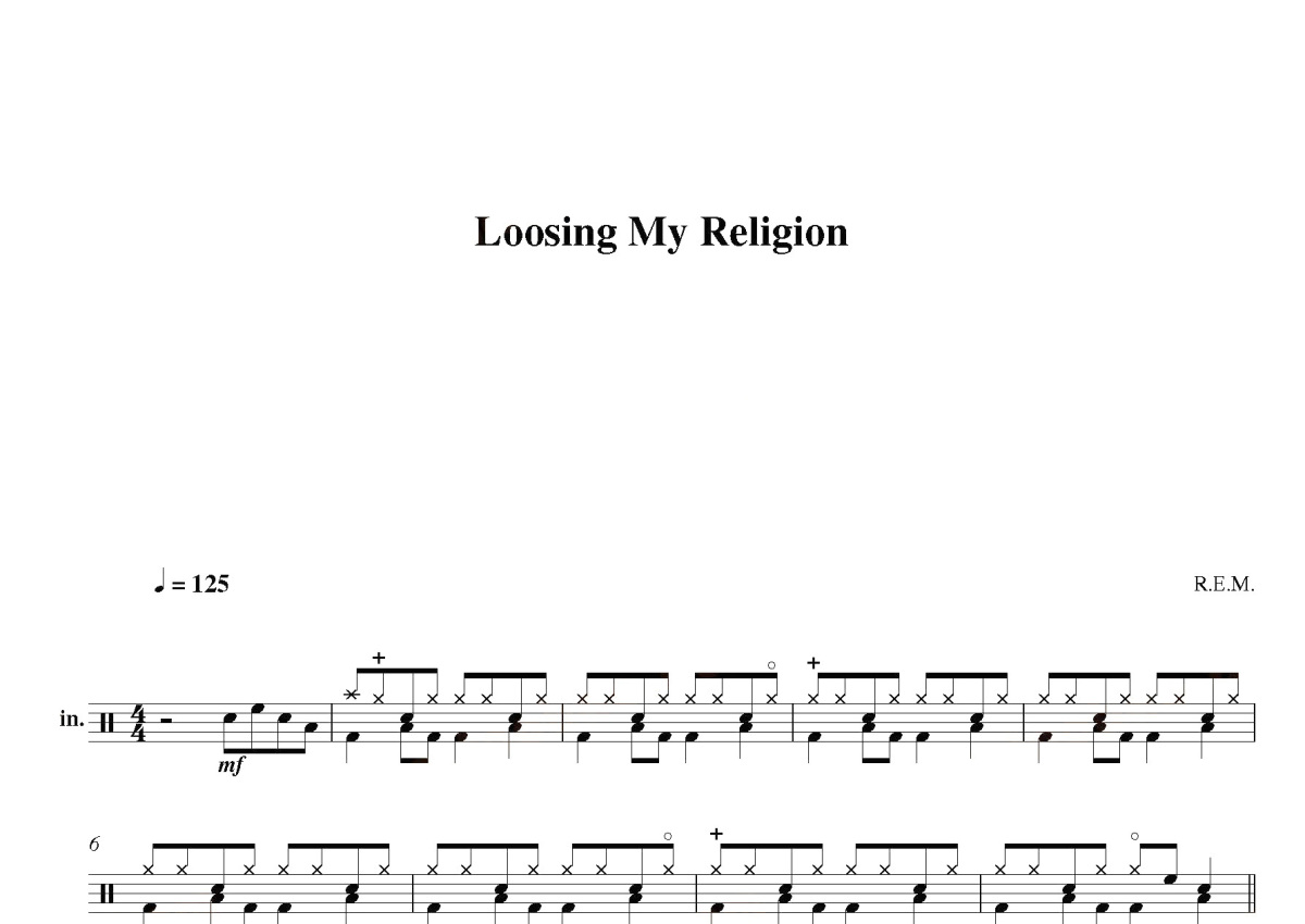 《Losing My Religion》是R.E.M.乐队演唱的一首歌曲,这份鼓谱共有三张高清图谱,图谱由 @打鼓谱 编配上传,图谱使用五线谱编配,使用这份Losing My Religion架子鼓谱,你将能够轻松地敲打出这首R.E.M.乐队的Losing My Religion,快来尝试吧。《Losing My Religion》是R.E.M.演唱的一首歌曲,收录于专辑《Out of Time》,该专辑为他们赢得了该年的格莱美最佳流行音乐奖,MTV所颁发的年度最佳音乐录影带、最佳突破性演出、最佳美术设计、最佳编排等荣誉。R.E.M.乐队(又译为快转眼球乐队),成立于1979年,是过去的20年里最有影响力的乐队之一。他们的另类音乐风格,独立音乐创作的特点都影响了整整一代人,特别是90年代出现的一大批的另类流行乐队,他们在美国社会上草根阶层中的影响力尤其突出。R.E.M.乐队是公认的另类流行摇滚。