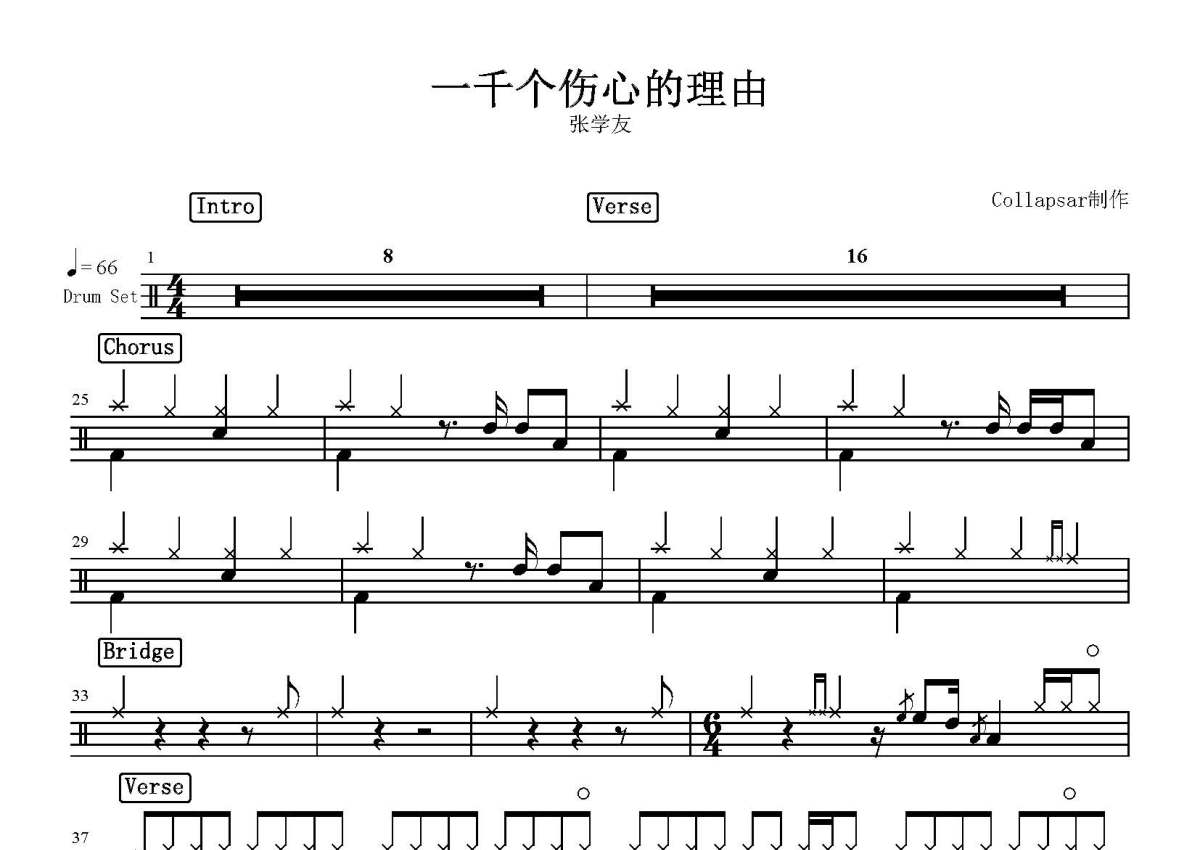 张学友《一千个伤心的理由》鼓谱 - 架子鼓谱