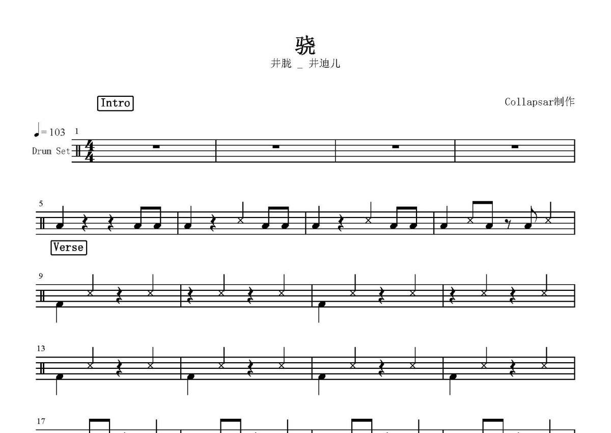 井胧/井迪儿《骁》鼓谱 - 架子鼓谱