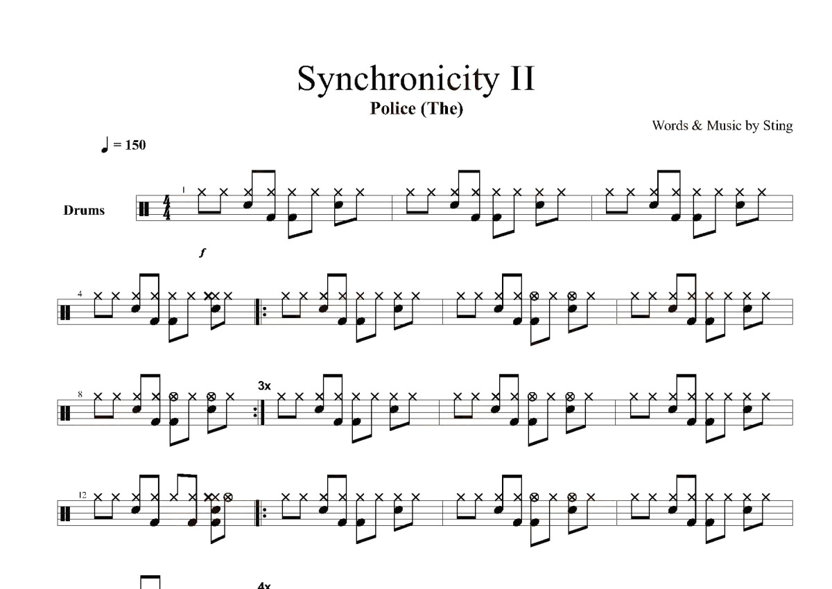 Police《Synchronicity II》鼓谱 - 架子鼓谱